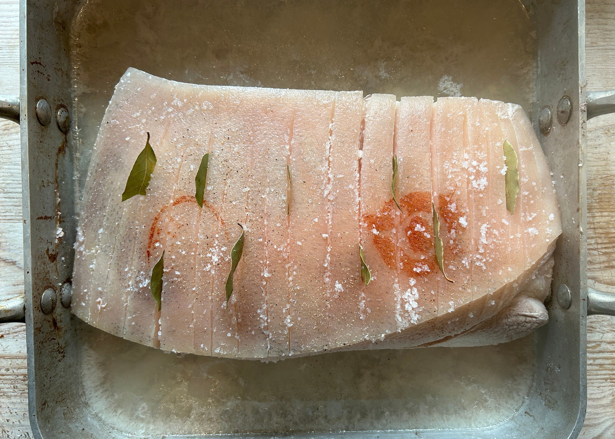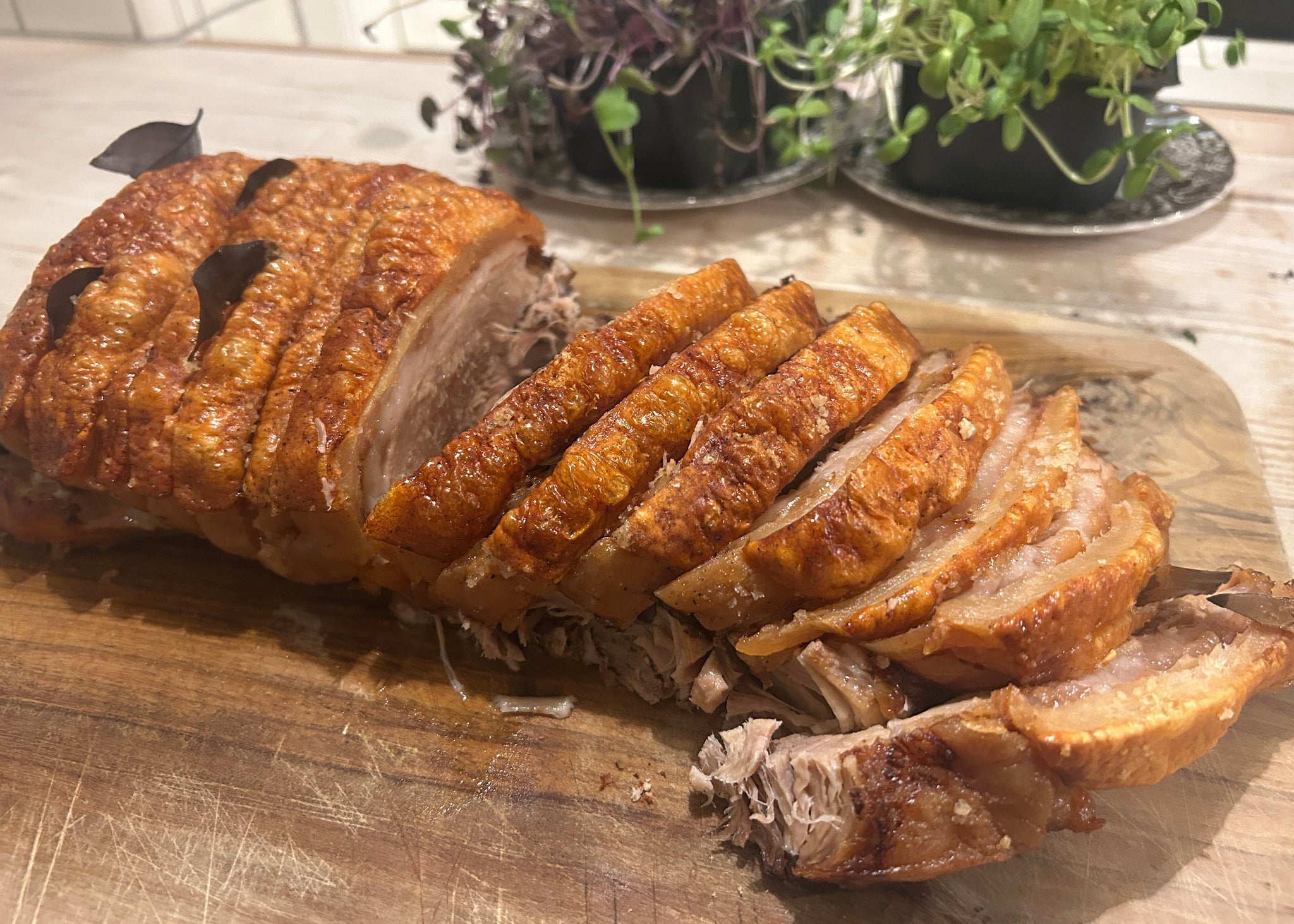 Skinkesteg fra vores økologiske sortbrogede danske landracegrise.