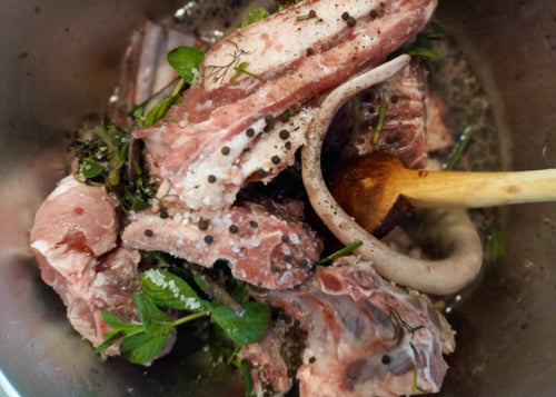 Hos os går intet til spilde. Vores økologiske grise bliver brugt fra tryne til hale – lever, nyre, hoveder, tæer, tunge, haler, hud og gode kogeben. Nu kan I også få fingrene i de bedste offcuts og lave jeres egne delikatesser: hjemmelavet leverpostej, sprøde flæskesvær, lækre pateer, rilletter eller en dyb, smagfuld fond.
